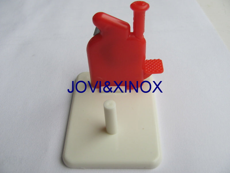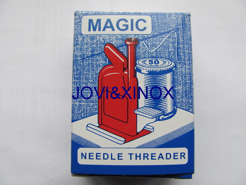 1.Faden in den Schlitz hinter den Trichter legen und die Nadel in den Trichter fallen lassen.